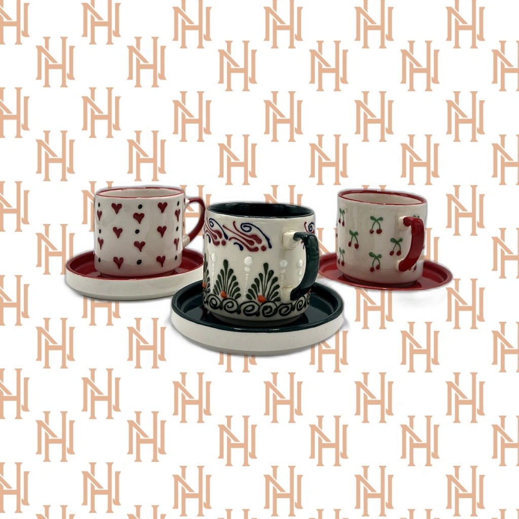 NUHA EL YAPIMI TEKLİ TABAKLI KUPA